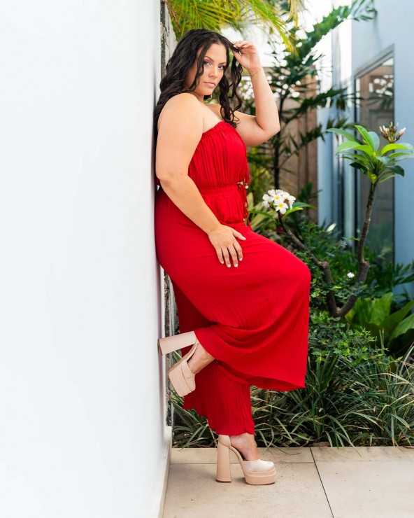 Combinaison pantalon plissée pour femme avec sa ceinture à la taille
